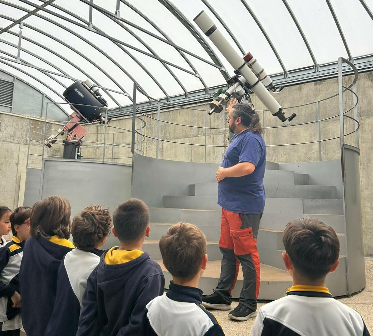 Tras contemplar la inmensidad del universo, como auténticos investigadores, los chicos de tercero han podido observar UN VERDADERO TELESCOPIO 🔭 y junto a él imágenes del mismísimo sol.